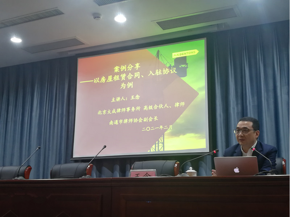 本次培訓特別邀請了北京大成律師事務所高級合伙人、南通市律師協會副會長王念律師到場主講。王念律師結合產業公司以及周邊園區近年以來的訴訟案例,對公司經營相關的房產租賃、招商協議、訴訟管轄、印章管理等相關法律知識進行了深入淺出的講解。