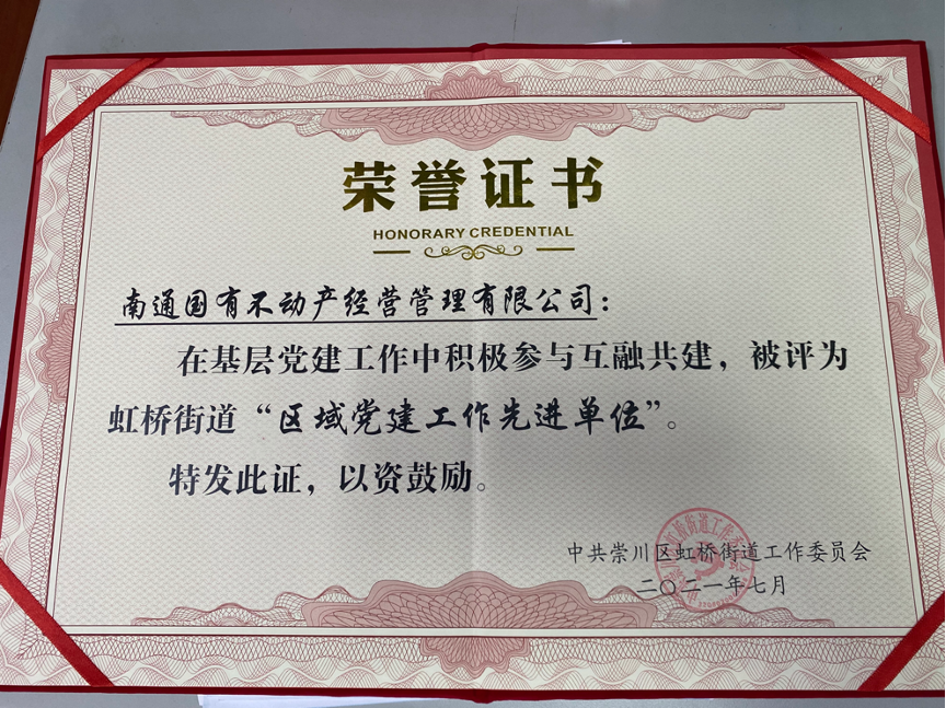 近年來,不動(dòng)產(chǎn)公司充分發(fā)揚(yáng)黨員同志的先鋒模范作用,積極推進(jìn)黨建工作,受到轄區(qū)街道黨工委和居民朋友們的好評(píng)。7月2日下午,虹橋街道“慶祝建黨100周年”主題活動(dòng)在南通開放大學(xué)中遠(yuǎn)路校區(qū)15樓會(huì)議室召開,我司作為街道優(yōu)秀區(qū)域黨建單位受到中共崇川區(qū)虹橋街道工作委員會(huì)表彰,被授予“區(qū)域黨建工作先進(jìn)單位”榮譽(yù)稱號(hào)。