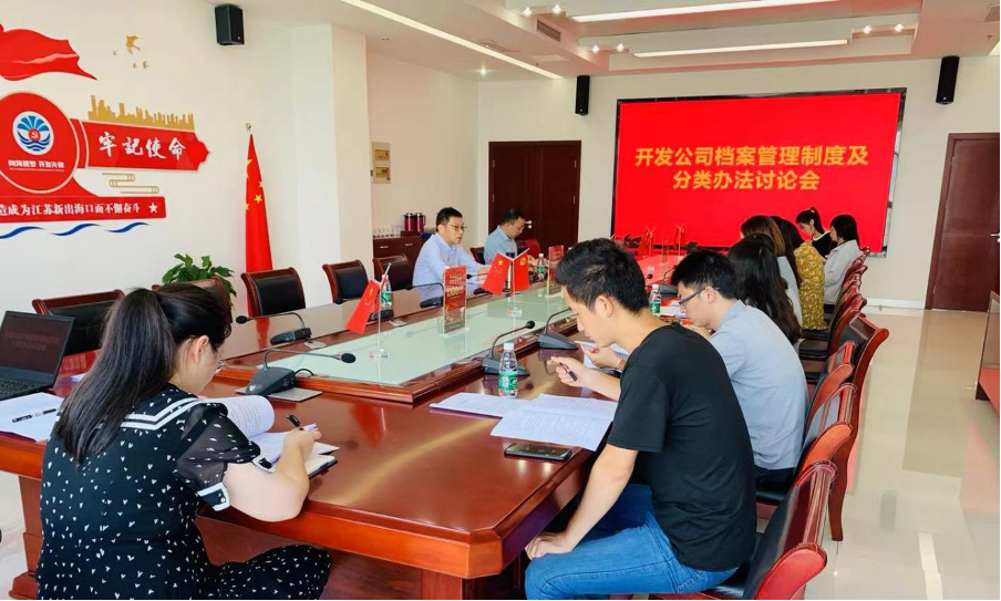 9月16日上午,開發公司召開專題會議討論公司檔案管理制度以及分類辦法,會議由公司副總經理張杰主持,各部門檔案負責人、公司檔案顧問參會。會上,綜合管理部介紹了《江蘇通州灣投資開發有限公司檔案管理制度(討論稿)》《江蘇通州灣投資開發有限公司檔案分類辦法(討論稿)》,與會人員積極討論并結合部門實際提出了修改意見。