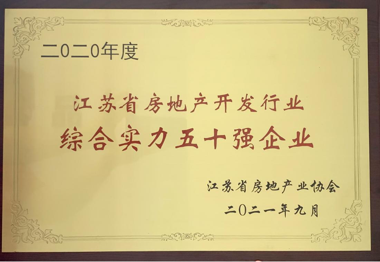 盛和房產榮獲“江蘇省房地產開發行業 2020年度綜合實力50強企業”稱號